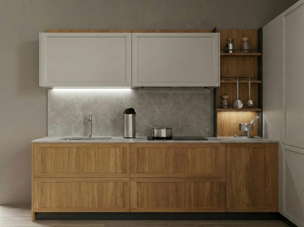 Spesso si commette l’errore di considerare l’impiallacciato una soluzione di serie B rispetto al massello. Nelle cucine dal design moderno a anta liscia, l’impiallacciato è tecnicamente l’unica via percorribile per avere stabilità e pulizia estetica. Un’anta liscia interamente in legno massello si imbarcherebbe nel giro di una stagione a causa delle variazioni di umidità.