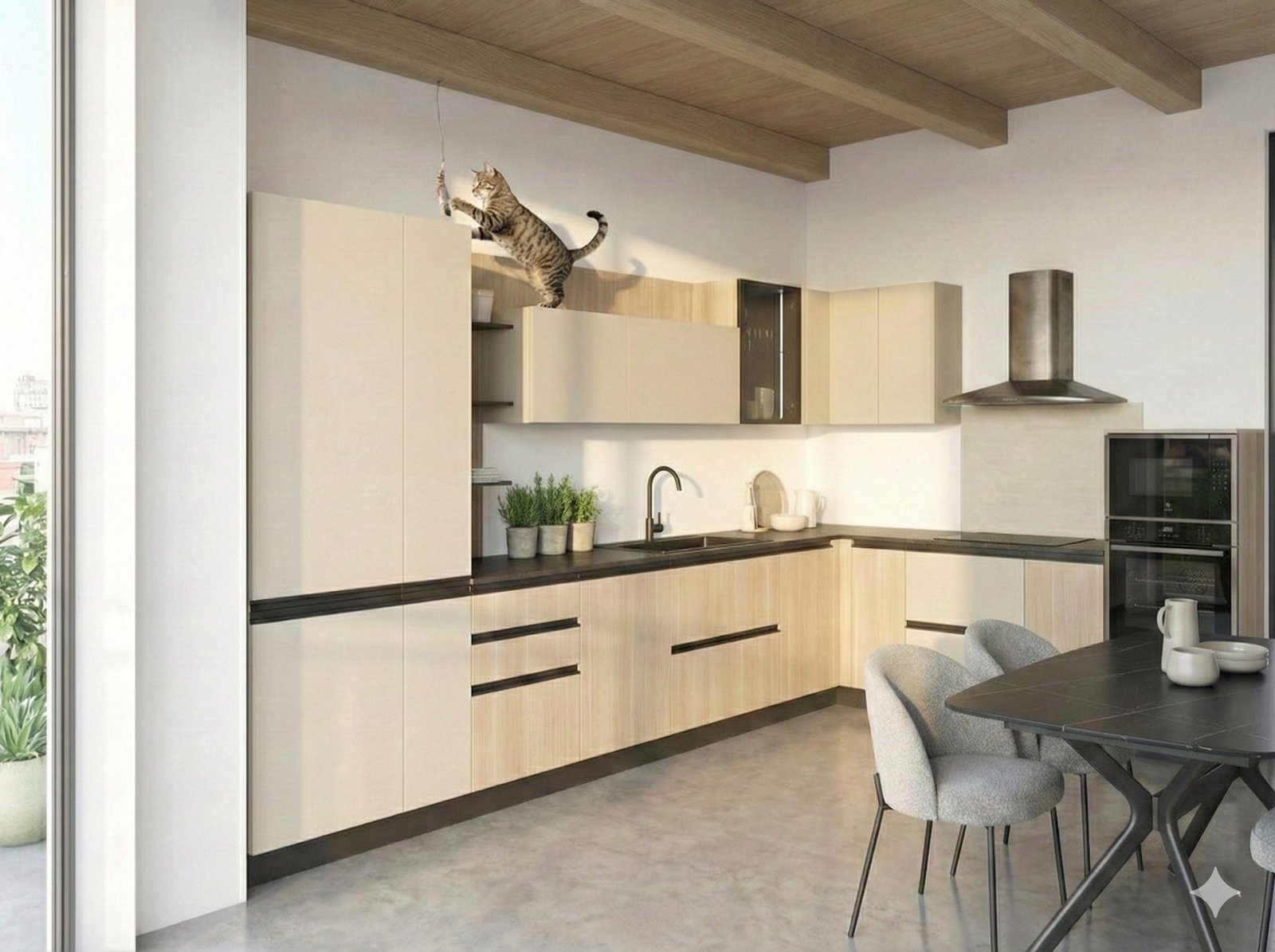 Se invece per te l’igiene è sacra e non vuoi assolutamente zampe sui pensili, l’unica soluzione tecnica è la Cucina a tutta altezza.