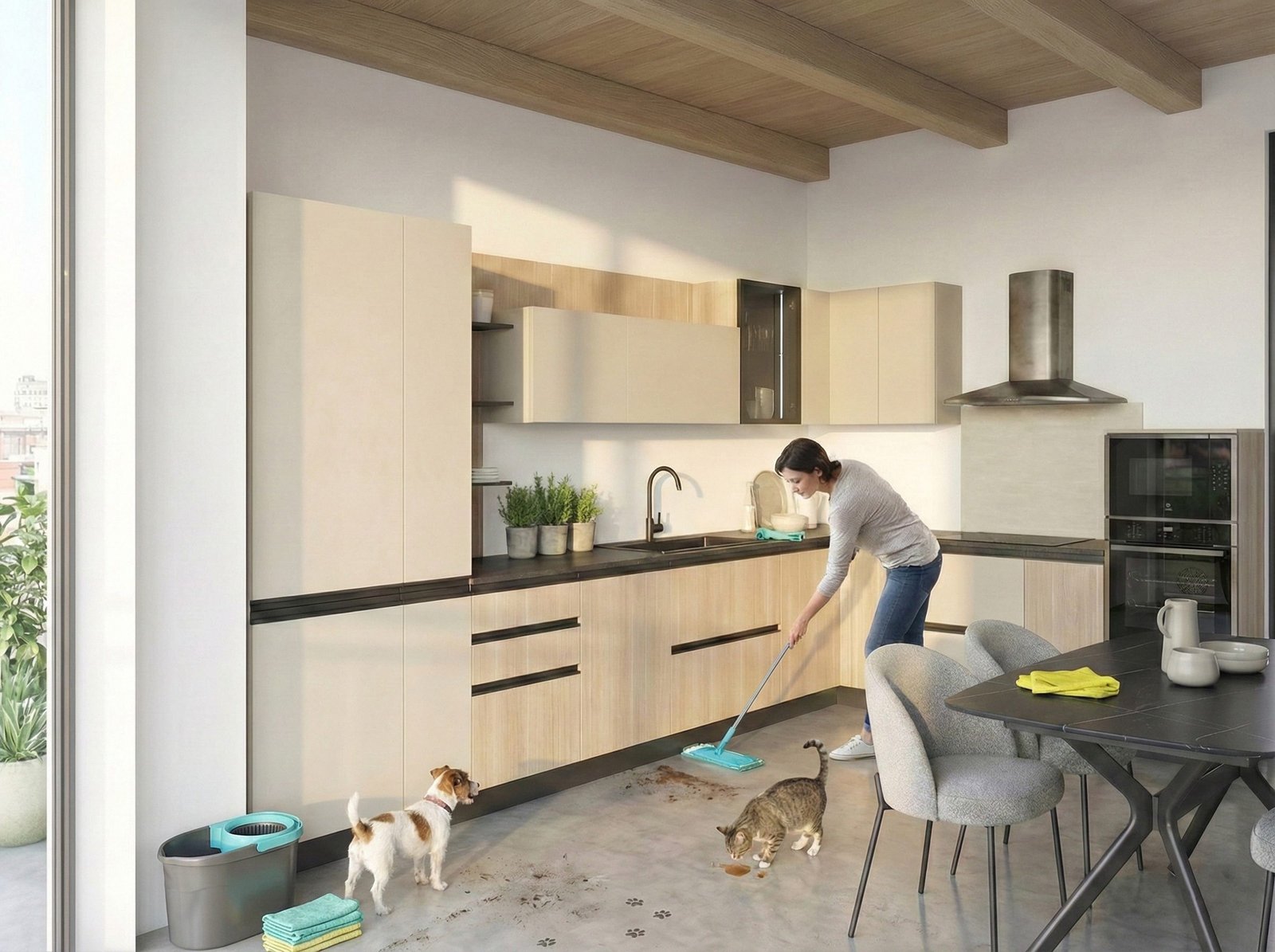 Gli animali portano polvere, peli e terra. La cucina deve essere facile da pulire.