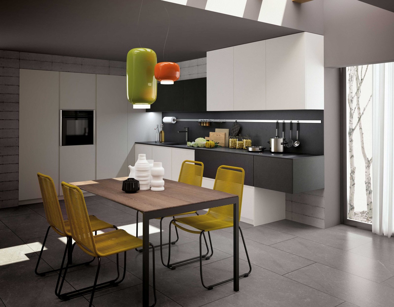 La cucina bianca sta bene su tutto, ma dà il meglio di sé per contrasto.