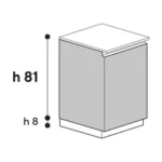 La vera innovazione del modello Tag 81 risiede nella sua struttura. A differenza delle cucine standard con fusto alto 72 o 75 cm, Tag 81 utilizza basi con altezza scocca di 81 cm. Questa differenza, apparentemente minima all’esterno, trasforma radicalmente l’interno: