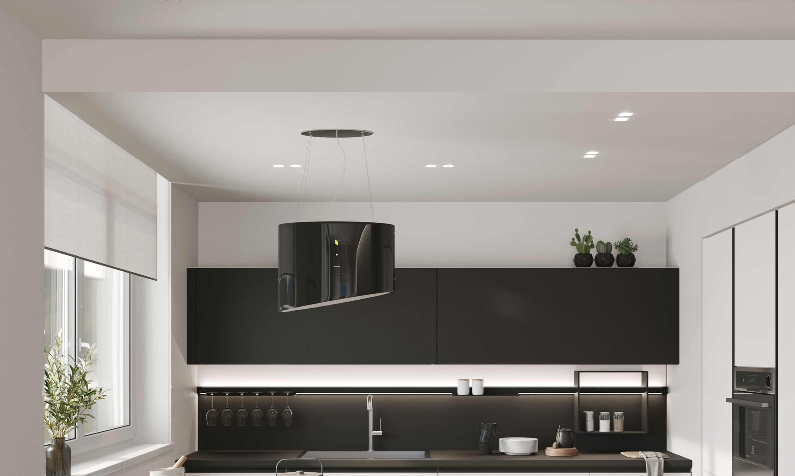 Se invece sei più da “cotture veloci”, ami le linee minimali, odi passare il vetril sull’acciaio e vuoi un salotto che si fonda con la cucina senza interruzioni visive, la cappa integrata a totale scomparsa è la tua migliore alleata.
