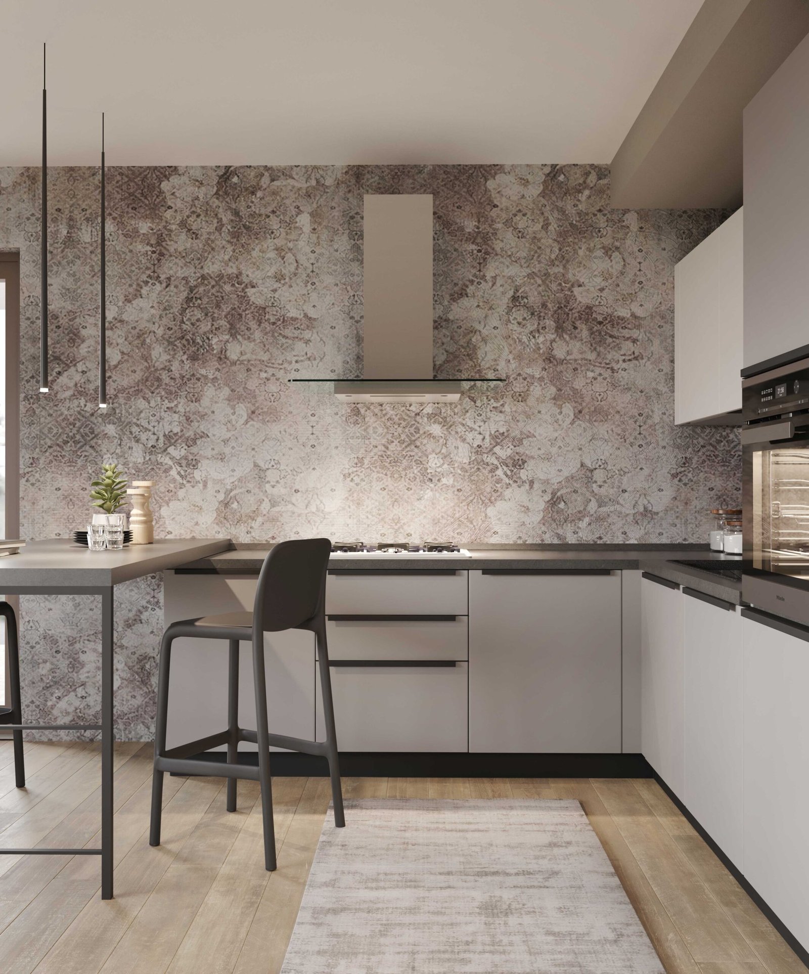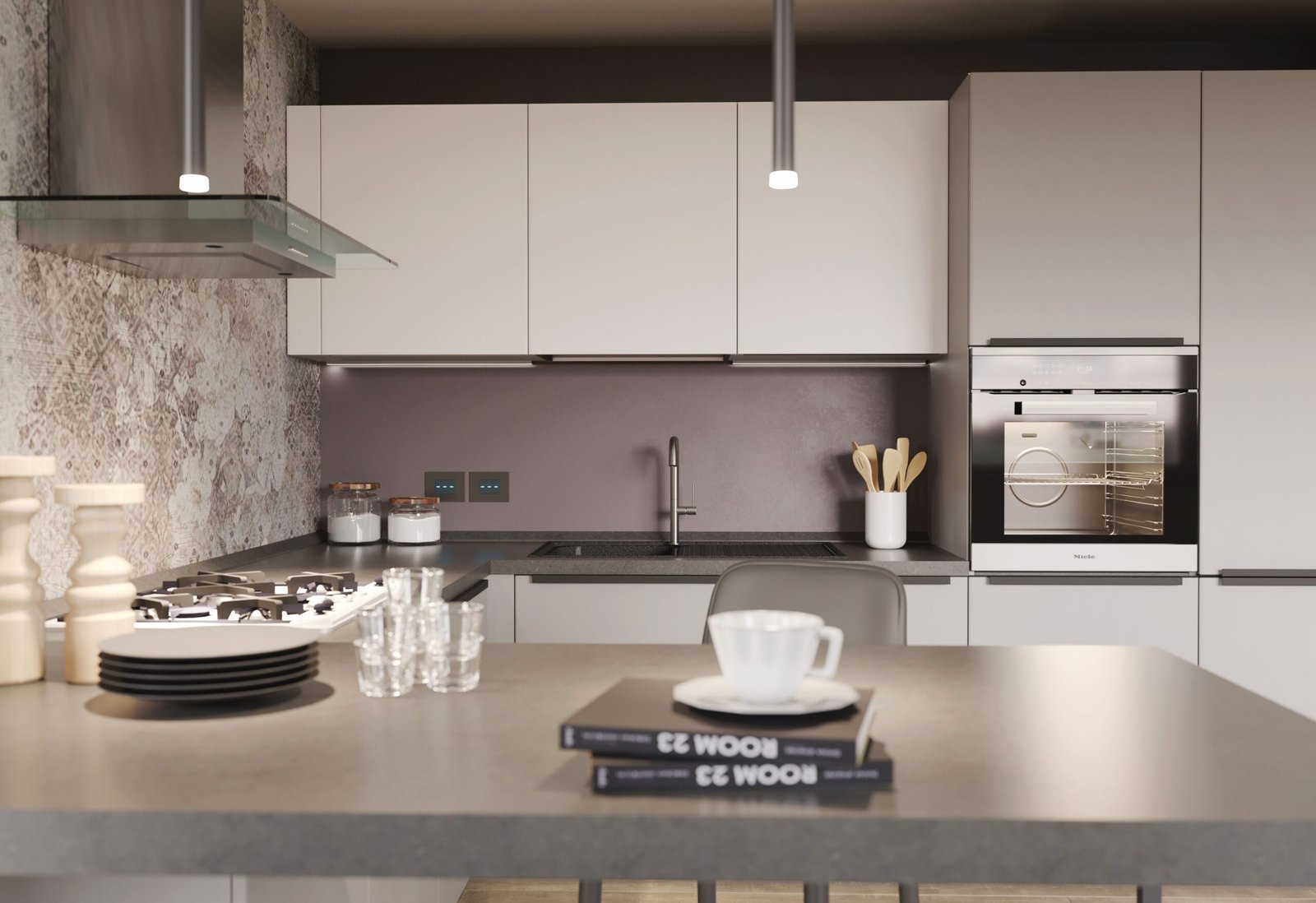 La Cucina Intra in questa configurazione è la scelta perfetta per chi cerca un design sensoriale. Unisce la morbidezza del tocco “seta” alla leggerezza architettonica degli elementi sospesi, offrendo una funzionalità completa in una veste estetica di assoluta tendenza.