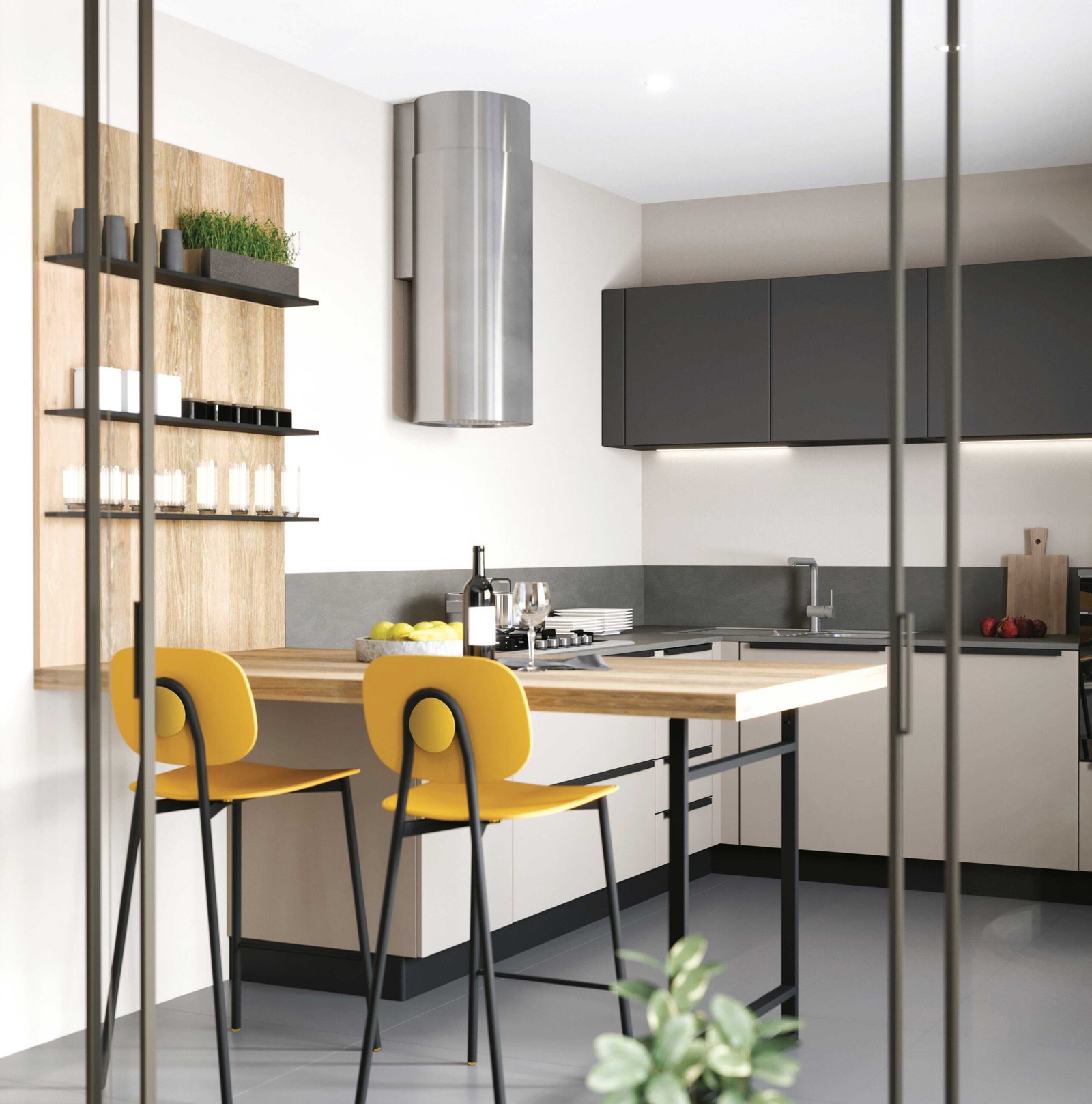 Cucina Intra in materico Laccato monofacciale e laminato effetto legno