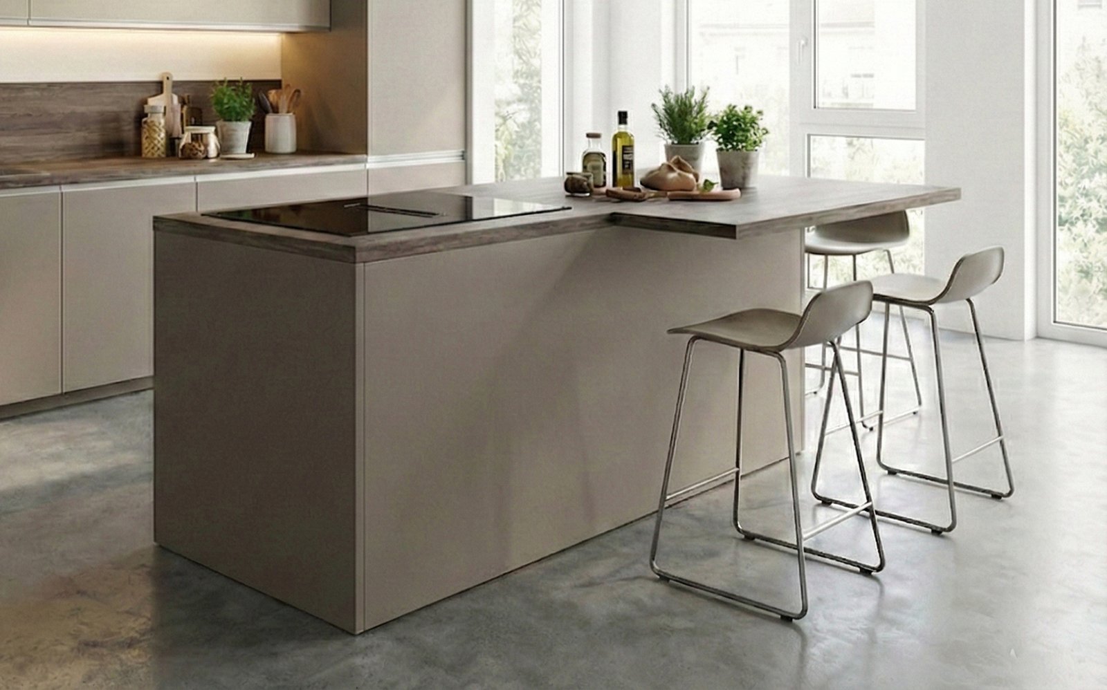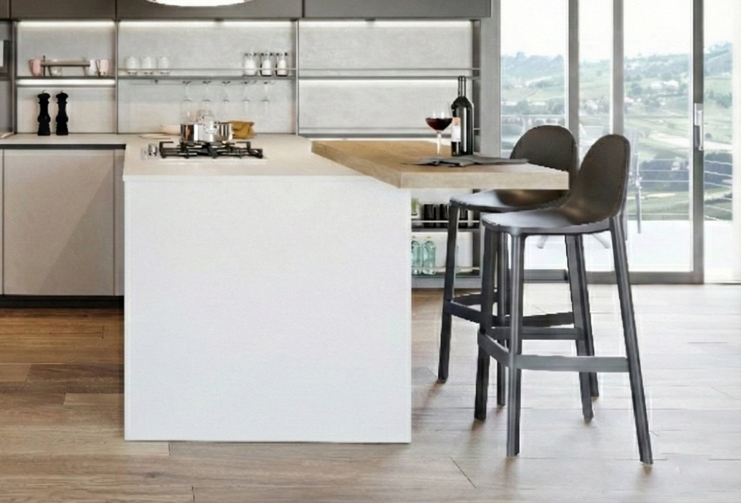 - Piano Snack altezza cucina (90 cm): È la continuazione naturale del top della cucina. Per questa altezza, lo sgabello deve avere una seduta alta circa 65 cm.